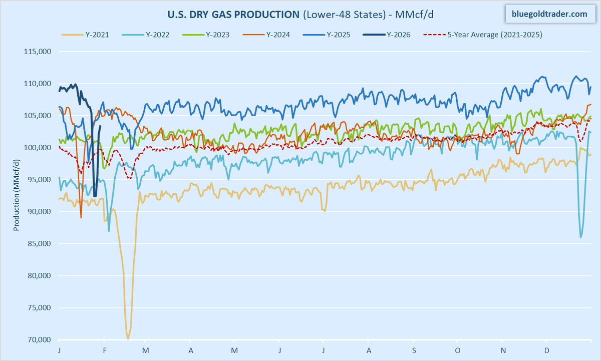 Winter Storm Fern affected more than just demand. At the height of the storm, an estimated 17 percent of U.S. natural gas production was curtailed due to freeze-offs. These production disruptions contributed to the record storage withdrawal and underscore the ongoing risks that extreme cold poses to natural gas supply.