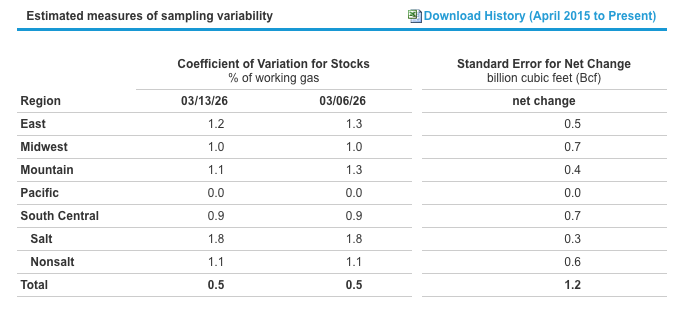 EIA Storage: Working gas in storage totaled 1,883 Bcf as of Friday, March 13, 2026, according to EIA estimates, reflecting a 35 Bcf increase week over week. Inventories were 177 Bcf above year-ago levels and 47 Bcf higher than the five-year average of 1,836 Bcf. Overall, storage levels remain within the historical five-year range.